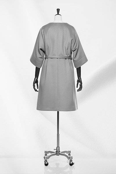 With the simplicity of this coat, you can enjoy many different looks. Sophisticatedly with its belt tied, or casually without the belt; a variety of tastes can be created depending on the wearer’s moods. The balance between its striking kimono-like sleeves and simple body produce a beautiful silhouette.