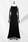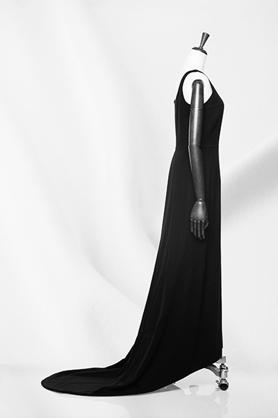 ネックラインと袖ぐりが潔くカットされたシンプルなソワレ。お召しになる方の美しい首と肩のラインを際立たせます。短くなった裾のフロント部分からわずかに覗く足首とシューズが、軽やかさを演出します。ソワレをご検討の際は、恐れ入りますが、事前に南青山サロンまでお問い合わせください。