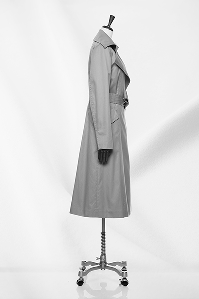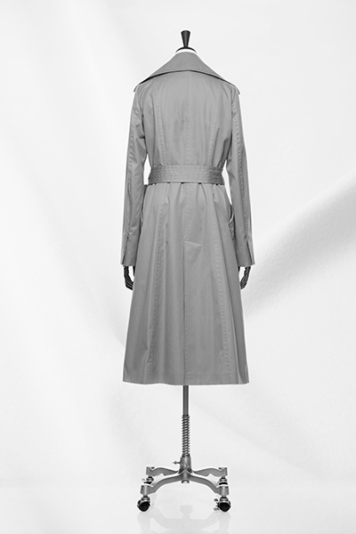 The very first and long-loved masterpiece of MIKAKO NAKAMURA. This elegant trench coat is reminiscent of the actress Sophia Loren. Although it features simple design removed epaulets and buttons, its large lapels and long length create a glamorous presence. This style is made with cotton and cashmere, etc.