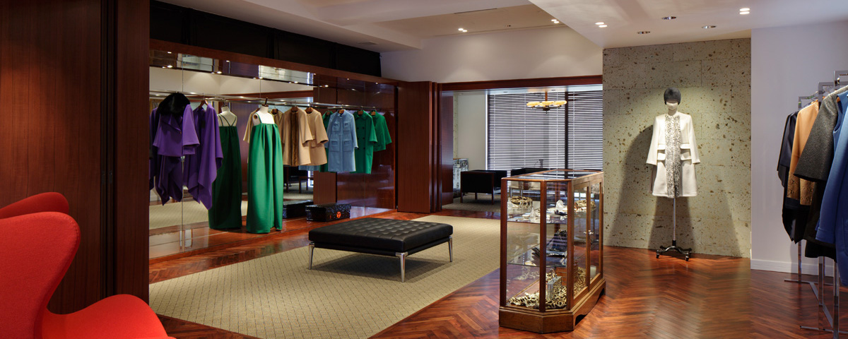 「南青山サロンでは、お客様を私のアトリエにお招きしているようにおもてなしをしたい。」そんなデザイナー中村三加子の願いを具現化いたしました。大谷石の壁、デンマークのシャンデリア、イギリスアンティーク、ミッドセンチュリーの家具が見事に融和した南青山サロンは、正に中村のアトリエの雰囲気そのもの。山岳画家であった中村の祖父、中村清太郎の絵も飾られています。一番奥には、周りを気にせずオーダーを承れるプライベートルームもご用意しております。